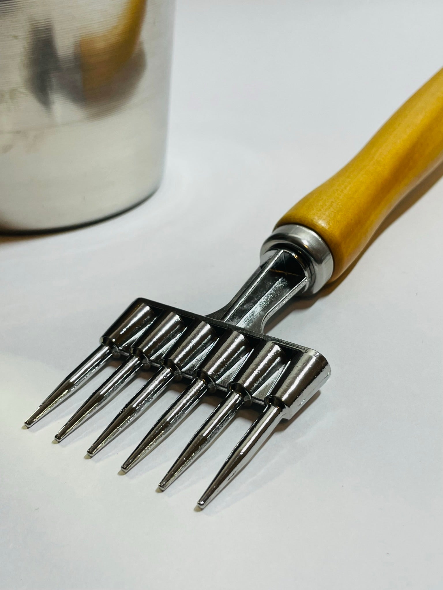Picahielo de 6 puntas con mango de madera.